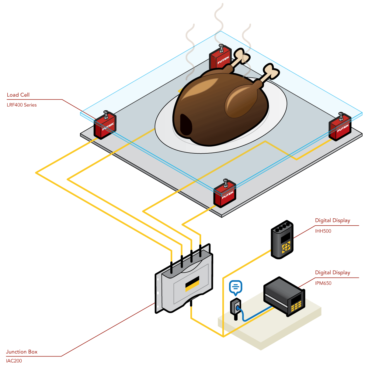 2、在上面的插图中,FUTEK 展示我们的LRF 系列高精度测拉压力用来创建一个细致的反馈系统来庆祝感恩节。