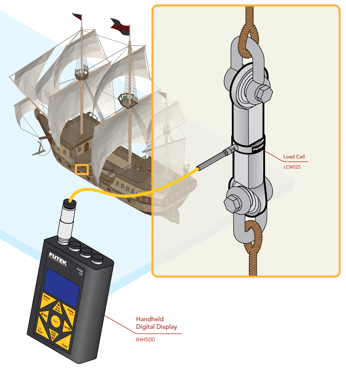 2、当索具收紧时,IHH500读取并显示LCM525的输出。