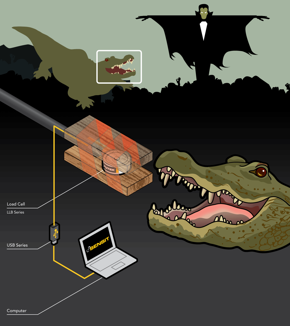 1、采用 LLB450 和 USB 采集模块,配套使用 SENSIT™测量软件,最致命的战士专家能够瞬间测量鳄鱼施加的力的大小。