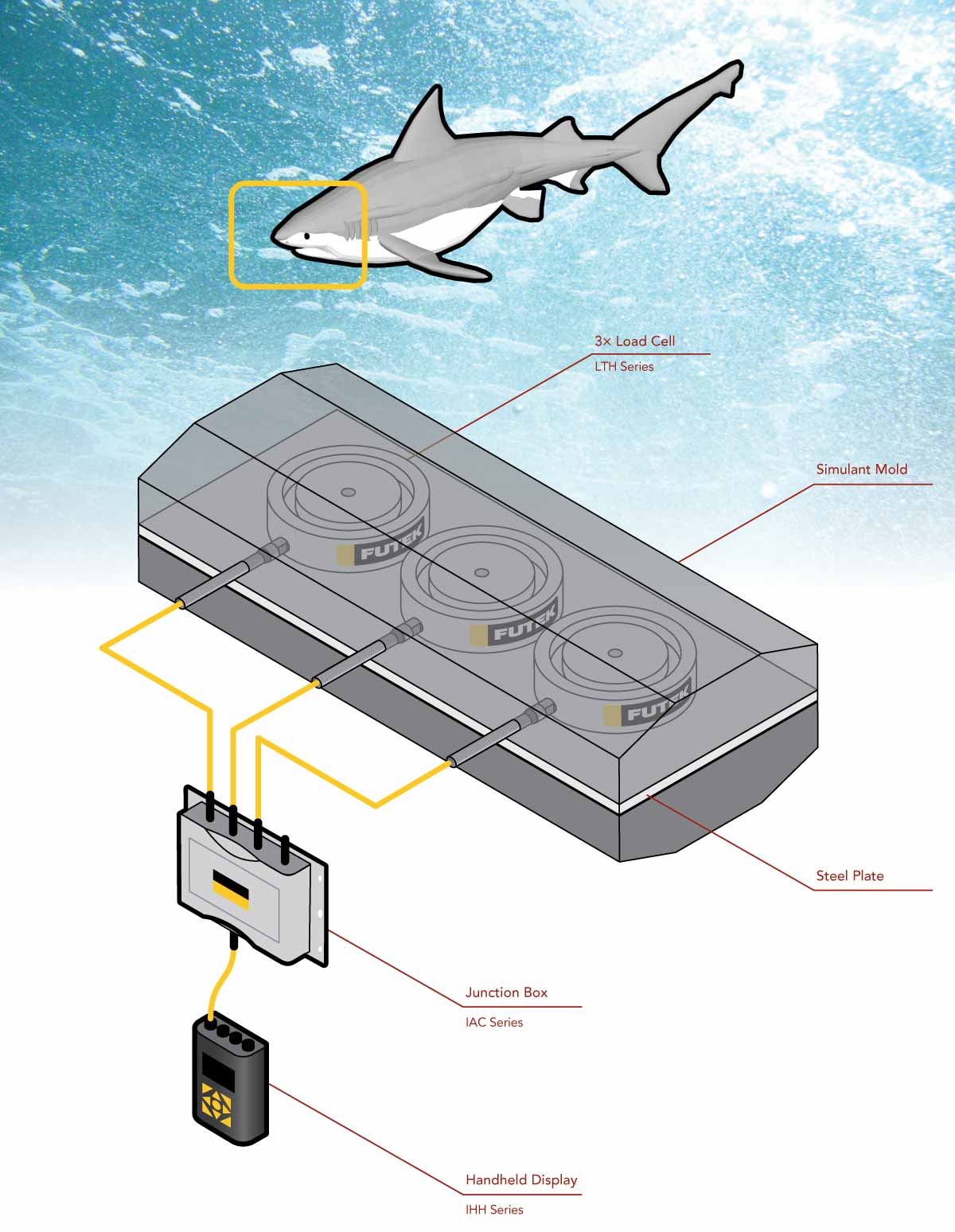 3个LTH500按钮式力传感器、四通道变送器IAC200和手持式数显表IHH500。