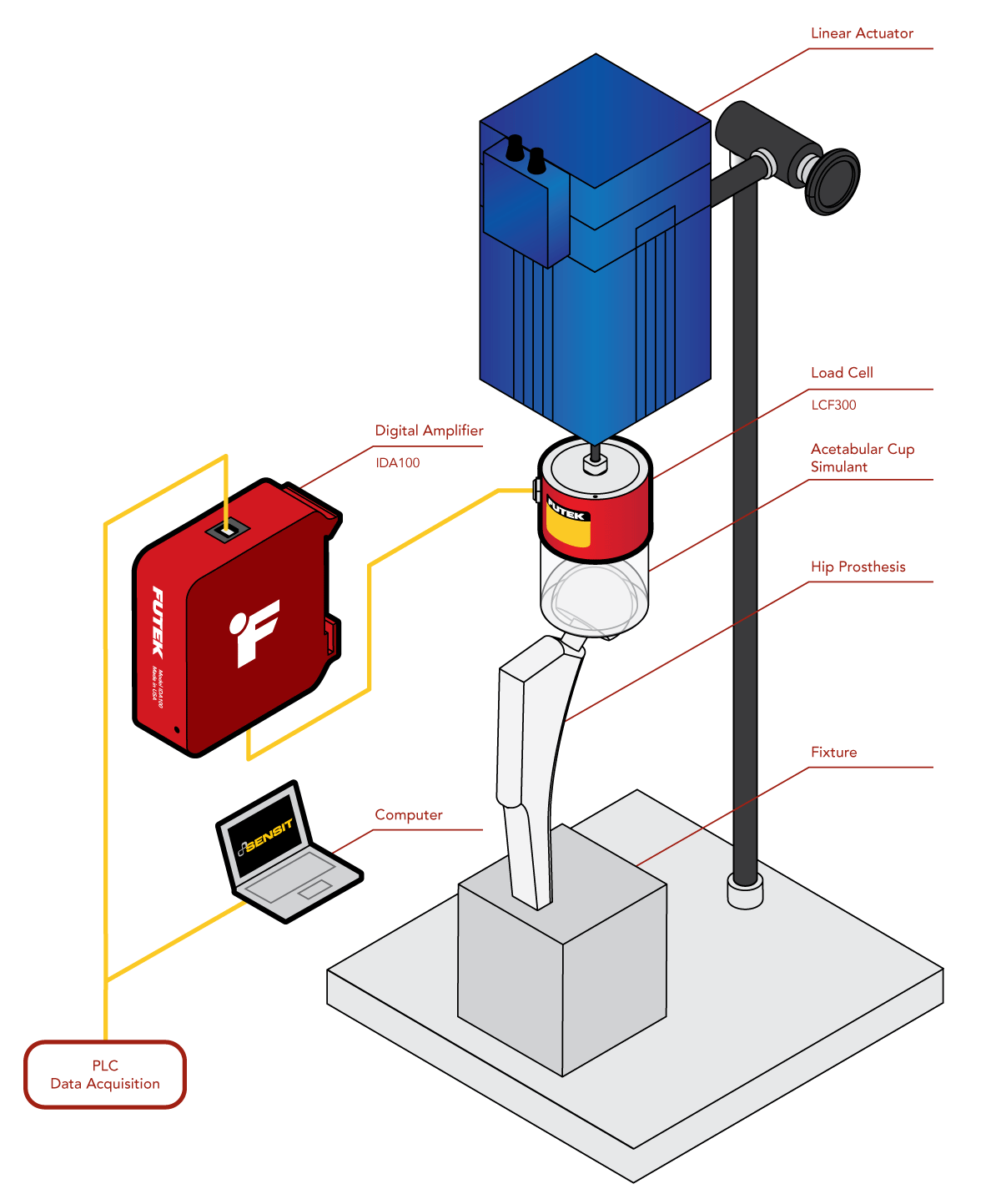 2、然后在髋臼杯和线性致动器之间安装一个 LCF300 轮辐式拉压力传感器,用于测试期间的力测量。