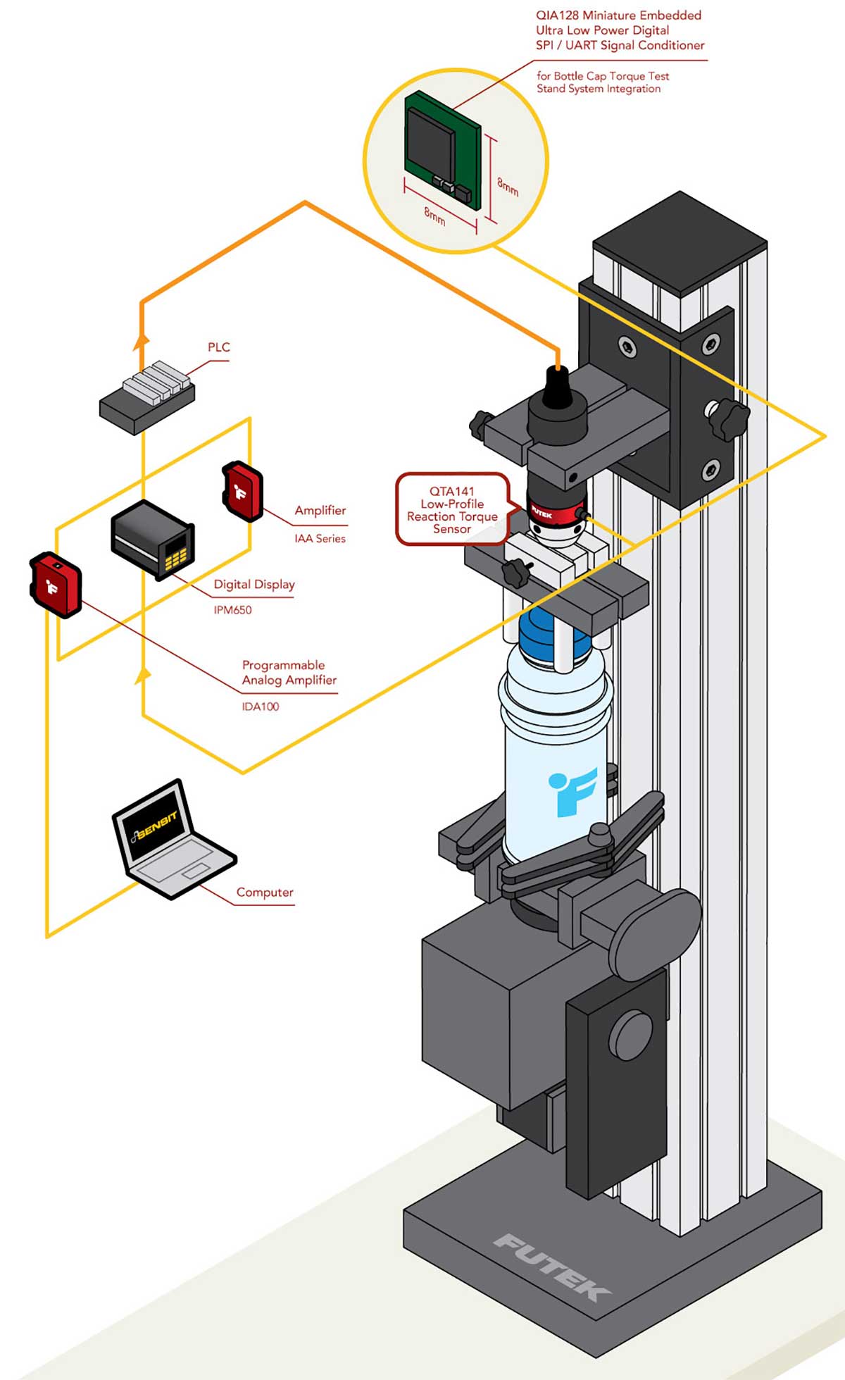 QTA141微反作用扭矩传感器与QIA128数字嵌入式信号调理器。