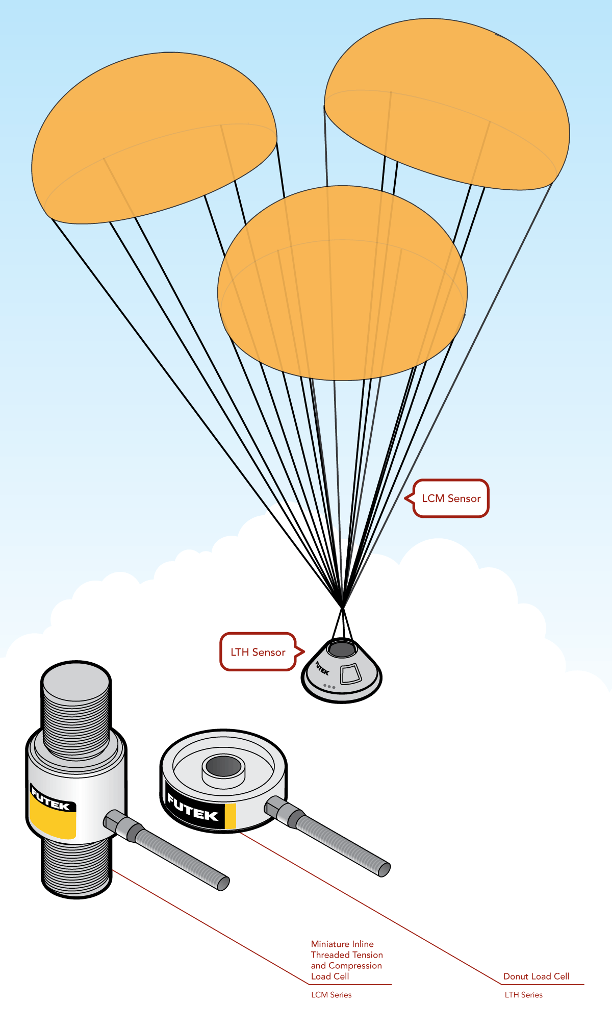 2、对于这个应用,FUTEK的力传感器检测减速下降过程中猎户号飞船与减速伞之间受到的拉力。